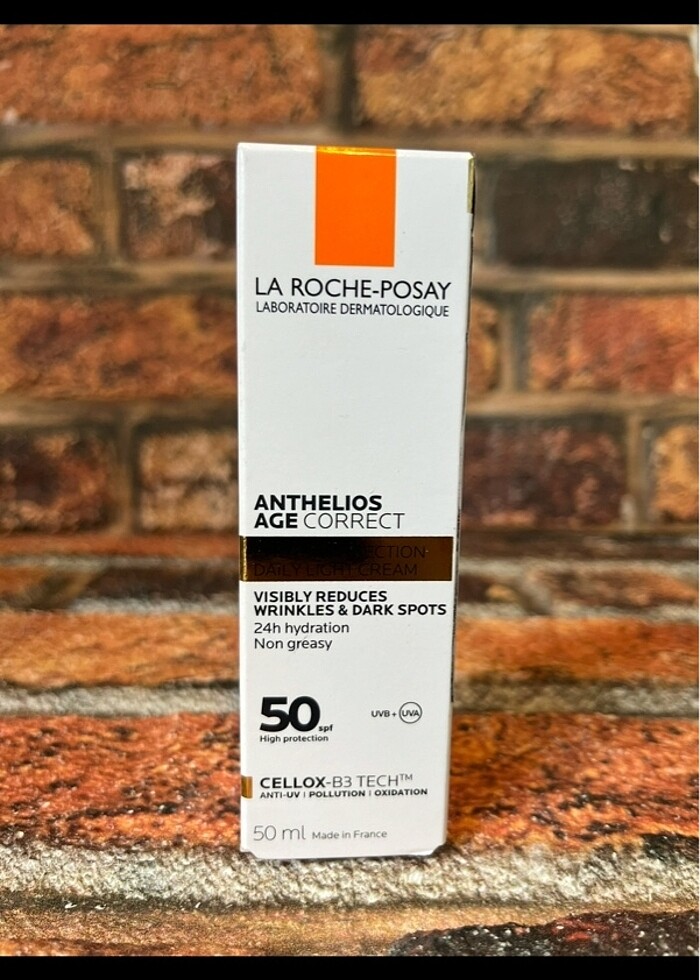 La Roche Posay Anthelios Age Correct SPF 50 Kirsiklik Kargiti Krem 50ml YASLANMA KARSITI YÜZ GÜNES KREMI Yaglanma belirtilerinin görünümünü azaltmaya yardimc günlük günes koruma faktörlü bakim kremi. Kirisiklik ve koyu lekelerin görünümünü azaltir. Kirsiklik olusumunun engellenmesine yardimc günes kremi, cildi zararli UVA ve UVB isinlarina karsi koruyarak genis spektrumlu koruma saglar. Olgun ve hassas cilt tipleri için ideal olan formül cilt elastikiyetini arttirmaya yardimci olur. Hyaluronik Asit cilde nem verir. PHE-Resorcinol, daha parlak ve pürüzsüz bir cilt saglar. Termal su içerigine sahiptir. Spf50 özelligi ile yüksek koruma saglar.