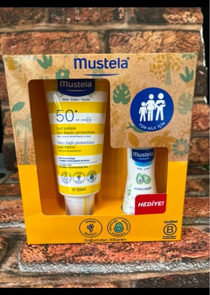 Mustela Günes Losyonu SPF50 200 ml + Mustela Hydra Bebe 100 ml MUSTELA very high protection sun lotion 200ml (çok yüksek koruma faktörlü günes losyonu 200ml) -MUSTELA hydrabebe body lotion 100ml (hydrabebe vücut losyonu 100ml) Organik Avokado içeren SPF50+ Yüksek Koruma Faktörlü Günes Losyonumuz, atopiye egilimli ciltler ve tüm aile için UVA ve UVB Isinlarina karsi yüksek koruma saglar. Kolay uygulanir, suya ve kuma karsi ok dayankli bir formüle sahiptir. Mustela Günes Losyonu SPF50, bebek cildini günegin zararli UV isinlarindan koruyarak cildinizi yaniklardan, kizarikliklardan ve cilt hasarindan korur. Mustela Hydra Bebe nemlendirici ise bebek cildini. nemlendirerek cildin nem dengesini. korur ve bebek cildinin yumusak ve saglikli kalmasina yardimci olur.
