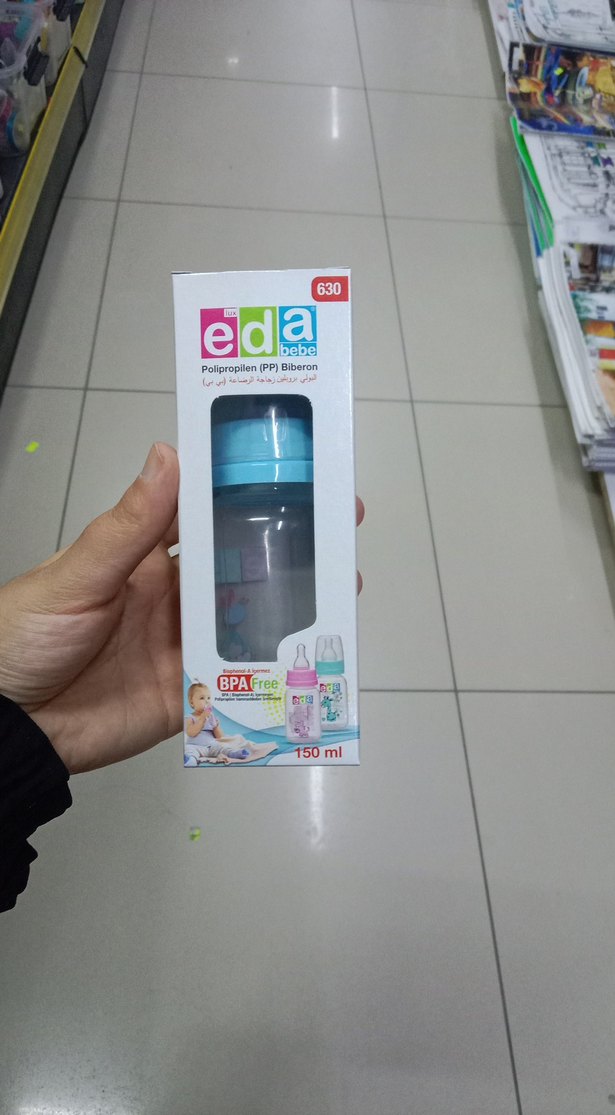 BPA içermeyen polipropilenden yapılmış 150 ml kapasiteli pastel mavi EDA bebek biberonu.