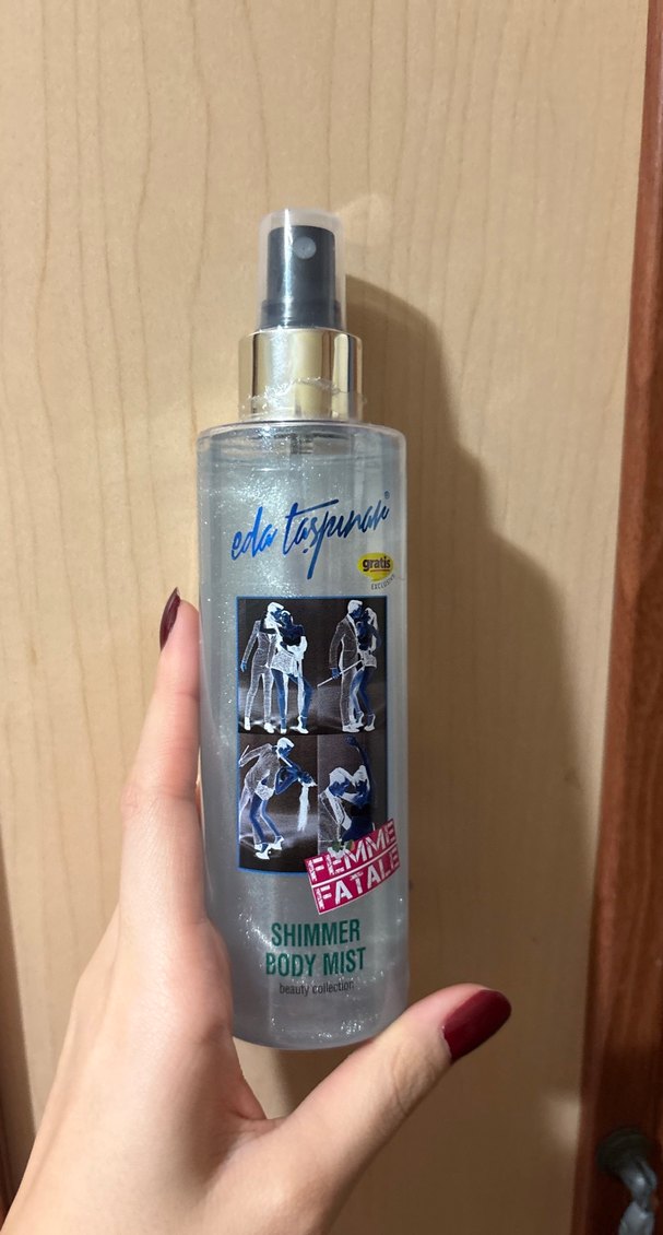 Eda Taşpınar Shimmer Body Mist, hafif ışıltı ve ferahlatıcı koku sunar. Sprey şişede kolay uygulanır. ✨