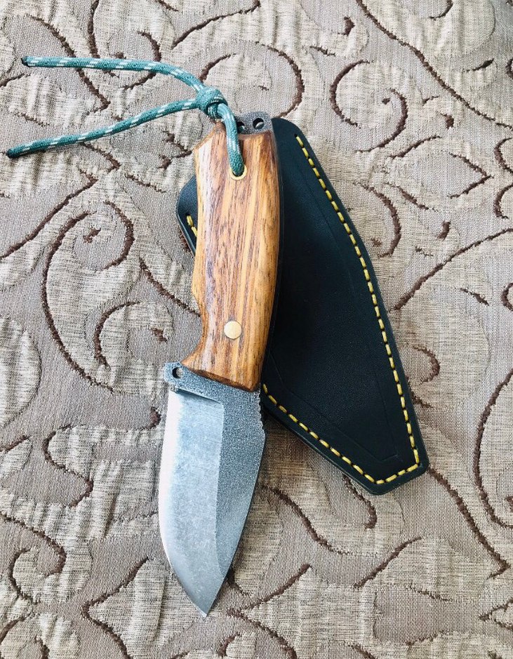 Sleipner Çelik EDC model 4,2mm kalınlık 180 mm boy 77mm kesici ağız Afrika zeytin ağacı kabze Siyah liner Vaketa deri el işçiliği kılıf