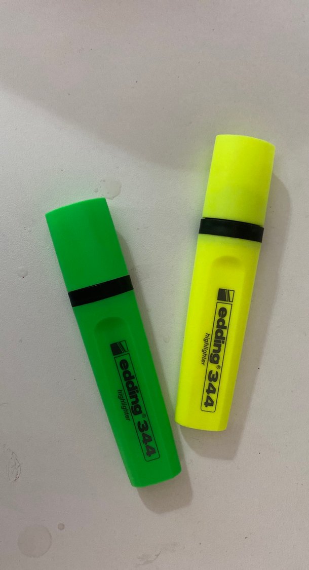 Edding 344 fosforlu kalem seti, sarı ve yeşil canlı renklerde, önemli metinleri vurgulamak için uygundur. ✏️ Hiç kullanılmadı. Set halinde satıyorum. Tekli alım için mesaj atabilirsiniz.