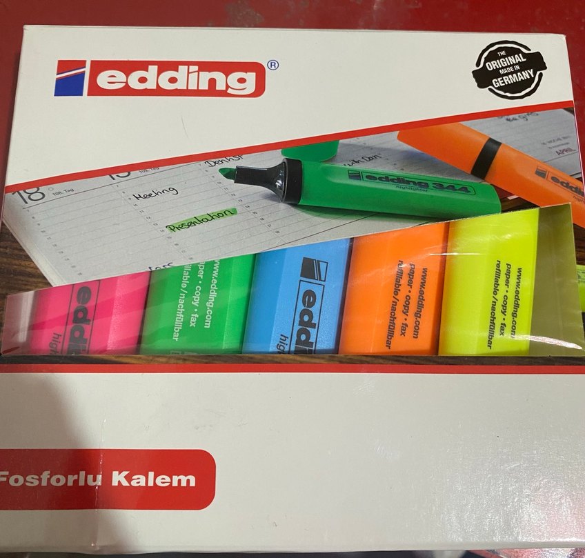 Edding markalı, canlı renklerde fosforlu kalem seti. Yazıları kolayca vurgulamak için uygun, çok renkli kalemler. ✏️