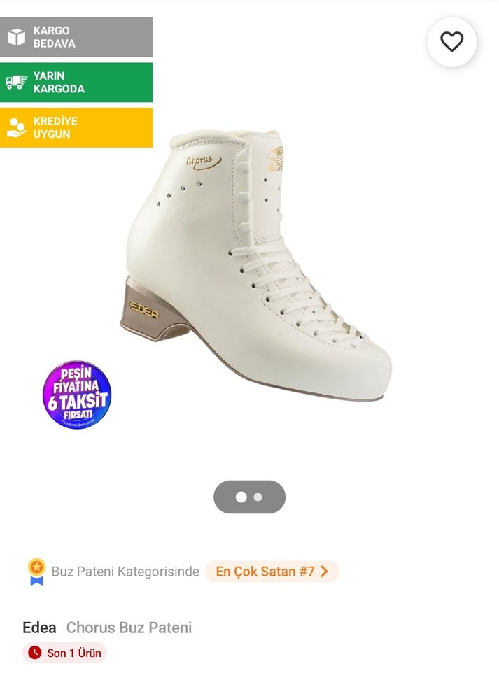 Edea Chorus 275 (41 Eu) Buz Pateni ve Edea Rotation Bicak. Yaklasik olarak 6 ay kullanildi. Paten uzerindeki soyukluklar bilindigi uzere kullanima engel degildir. Kondisyonu ve bicaklari iyi durumda. Bileklerinde kirilma bulunmamakta. Double ve triple jumplara uygundur ben single atlayislarda aktif kullandim. Icinde orijinal edea tabanlik mevcuttur. Oluklari 1.5 ay once acildi. Su an ki fiyati 36k. Orijinal kutusu, pasaportu ve posetinde gonderim saglayacagim. Guardlar ve bicak kilifi dahil degildir, dilerseniz ilan acabilirim. Pazarlik icin: 551 944 9390
