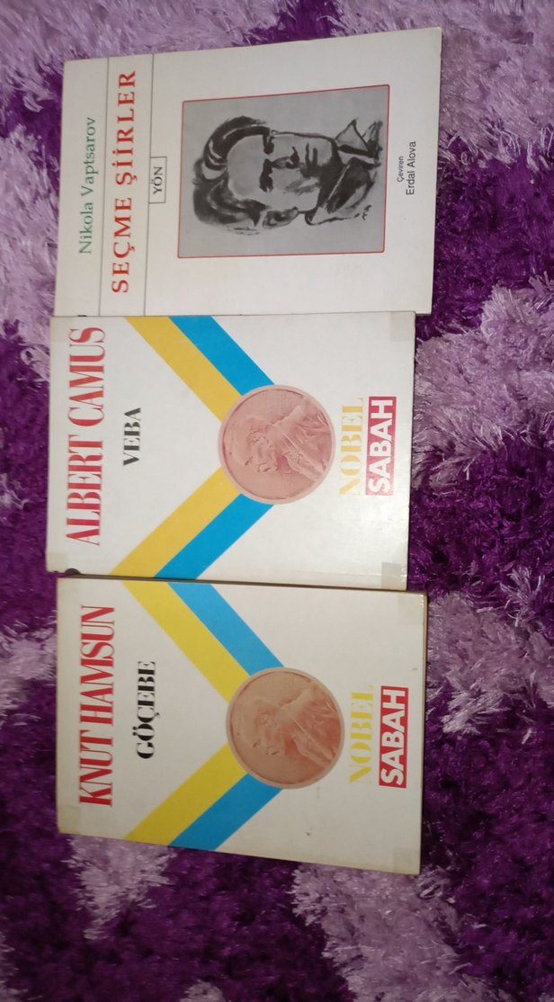 Nikola Vaptsarov'dan seçme şiirler ve Albert Camus ile Knus Hamsun'un romanları içeren Türkçe kitap seti.
