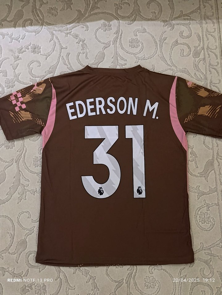 Erkek kahverengi kısa kollu formada baskılı "EDERSON M." ve 31 numarası bulunur. Yumuşak ve sıcak kumaştan, sokak stiline uygun kesimlidir.