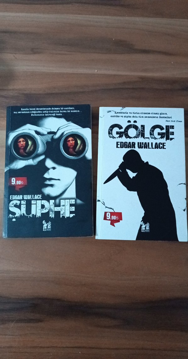 Edgar Wallace'ın "Şüphe" ve "Gölge" adlı gizem ve gerilim romanları. Köşeleri resimde görüldüğü gibidir hafif yıpranmış olabilir. ikili fiyattır.