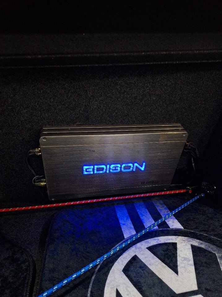 EDISON lacivert müzik sistemi, koyu ve şık tasarımı ile aydınlatmalı marka logosu taşır. 5 kanal kutulu yeni