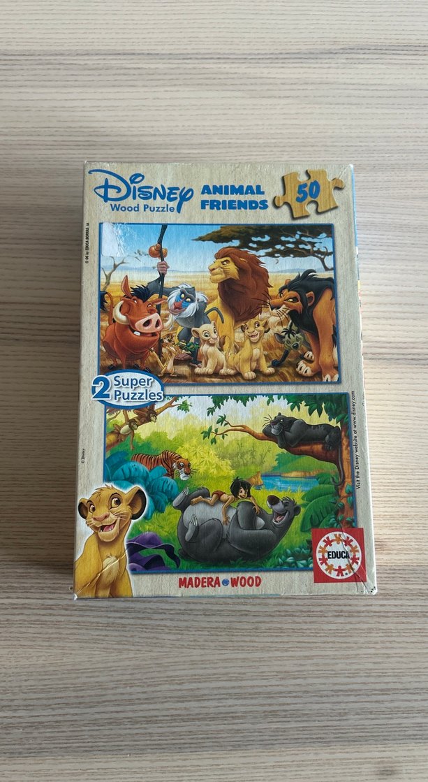 #Educa Disney'in hayvan dostları temalı 2 adet 50 parçalık ahşap yapboz seti, çocuklar için renkli ve eğlenceli.
