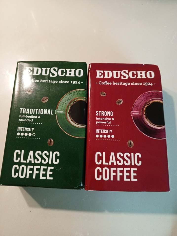 Eduscho Classic Coffee, tam gövdeli ve yuvarlak aromalı Traditional ile yoğun ve güçlü Strong çeşitleriyle 1924'ten beri kahve geleneğini yaşatıyor. ☕