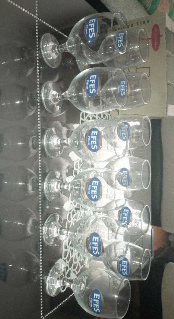 Efes logosu bulunan beyaz ayaklı bardak seti, şeffaf ve zarif tasarıma sahiptir. 12 adet kurulu efes Pilsen bardagı hiç kullanılmadı sıfır fotoğraf için acıldı kırık çizik kesinlikle yok