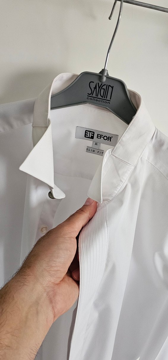 EFOR MARKA xl beden damatlık kolları manşetli kol düğmeli, yakası papyon takmaya elverişli tertemiz erkek gömlek. düğünde 1 kez kullanıldı ve dolaba kaldırıldı.