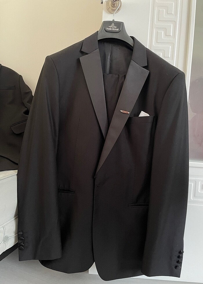 Ürün sadece iki kere giyildi nikahta ve fotoğraf çekiminde. bedeni 56-6 droptur hiçbir problemi yoktur siyah renktir ölçüleri fotolarda mevcuttur. saten çıkma yakası vardır istenirse çıkarılabilir. kumaş içeriği p yün 0 polyester gömleğini de ayrıca satıyorum dolabıma bakabilirsiniz
