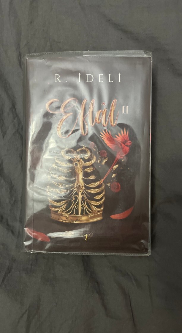 R. İdeli'nin Efsal II romanı, altın renkli kaburga ve kırmızı kuş figürlü koyu kapak tasarımıyla gizem ve merak uyandırıyor.