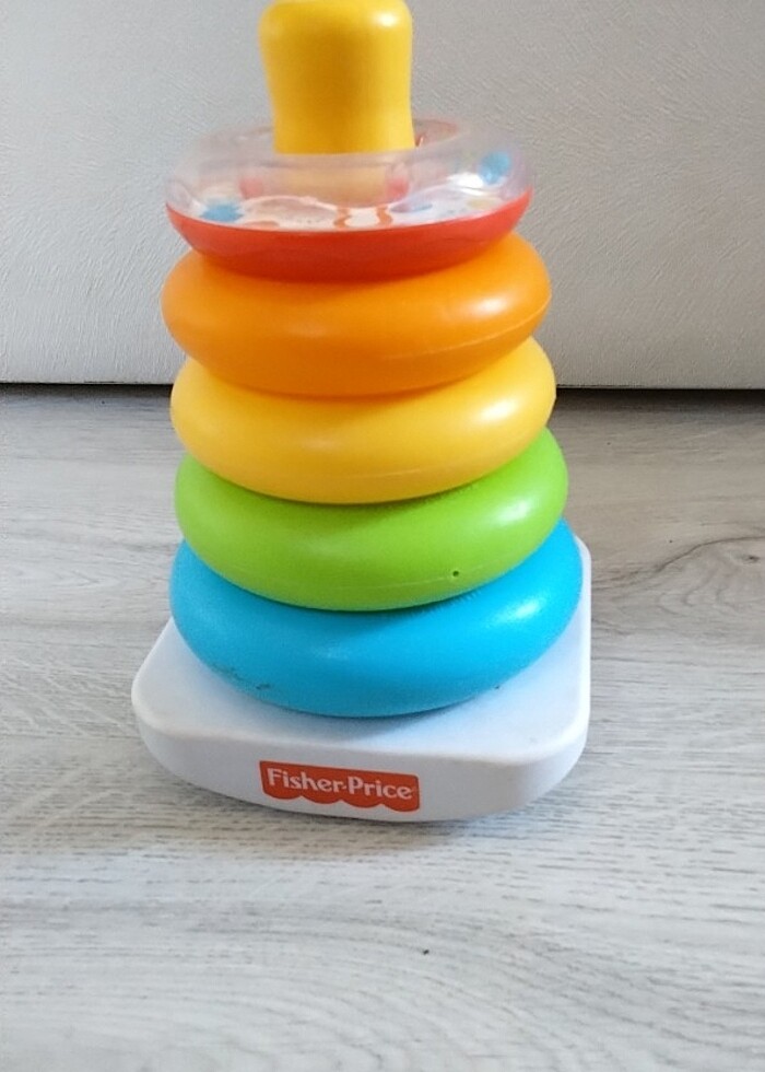 Fisher price halkalar bebeklikten itibaren hem renkleri hem de büyüklük kavramını ogrenebilecegi bir üründür ayrica en üstteki kırmızı halkanın içindeki toplarda ses çıkardıkça çok hoşlarına gidiyor herhangi bir yerinde sıkıntı yoktur yeni gibi temiz kullanıldı