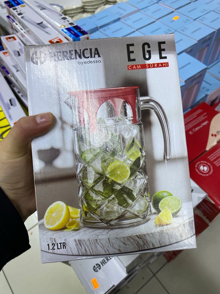 EGE Serencia 1.2 litre cam sürahi, gri kapaklı ve şeffaf dokulu gövdesiyle soğuk içecekler için uygundur.