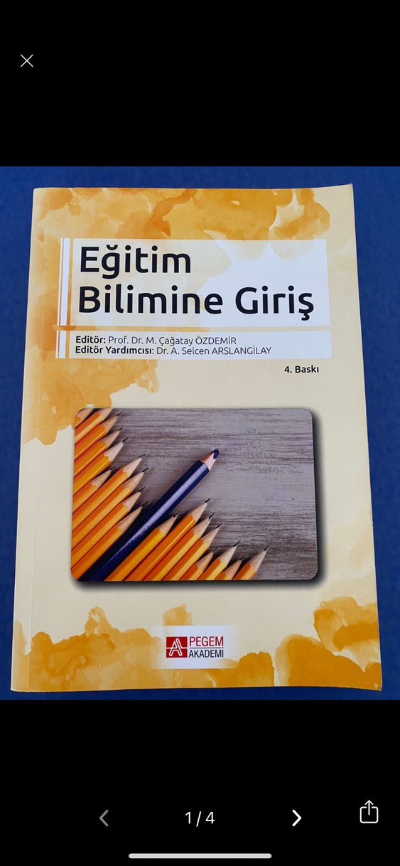 Pegem Akademi Yayınları Eğitim Bilimine Giriş kitabı. Bazı sayfalarda önemli yerlerin altı fotoğrafta da göründüğü üzere fosforlu kalemle üzeri çizildi. Onun dışında hiçbir şeyi yoktur.