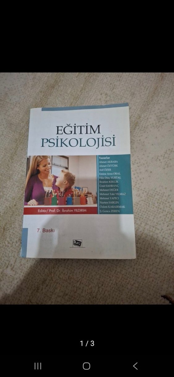 "Eğitim Psikolojisi" kitabı, farklı yazarların eğitim ve psikoloji üzerine görüşlerini içerir. 7. baskıdır, editörü Prof. Dr. İbrahim Yıldırım. Hasarsız bazı altı çizili yerler ve notlarım var testler de çözülü.