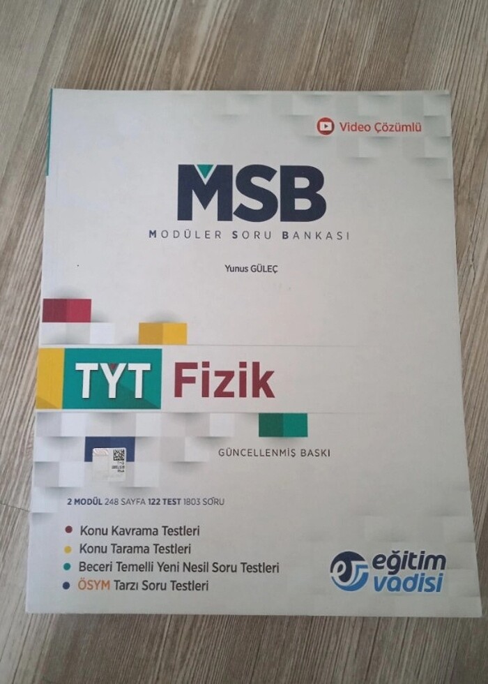 Sadece ilk beş sayfası çözülmüş onun dışında hiç kullanılmadı 2 modülden oluşuyor eğitim vadisi tyt fizik soru bankası