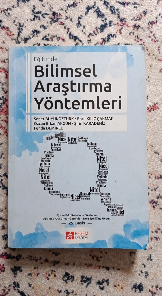 Eğitimde bilimsel araştırma yöntemlerini içeren, nicel ve nitel yaklaşımları kapsayan 25. baskı kitabıdır. Pegem Akademi tarafından yayımlanmıştır.