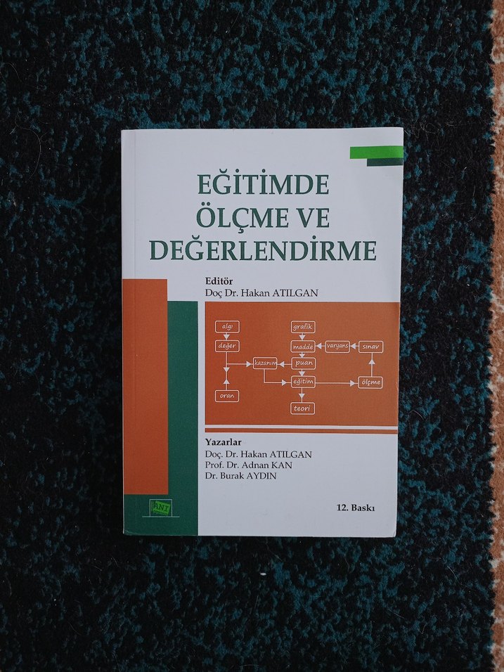 Doç. Dr. Hakan Atılgan'ın editörlüğünde eğitimde ölçme ve değerlendirme konularını içeren kitap. Prof. Dr. Adran Kan ve Dr. Burak Aydın katkılı. Ön kapak biraz bükülmüş. Kullanılmadı.