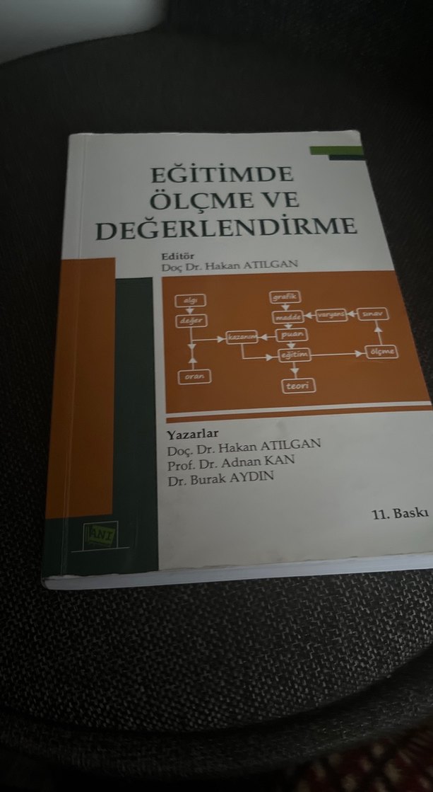 Eğitimde Ölçme ve Değerlendirme adlı kitap, Doç. Dr. Hakan Atılgan editörlüğünde, Doç. Dr. Hakan Atılgan, Prof. Dr. Adnan Kan ve Dr. Burak Aydın tarafından yazılmıştır. 11. baskıdır.