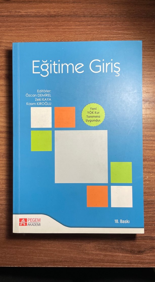 Eğitime Giriş kitabı, 18. baskı ve Pegem Akademi tarafından yayımlanmıştır. Özcan Demirel, Zeki Kaya ve Kasım Kıroğlu editörlüğündedir ve yeni YÖK müfredatına uygundur. Bazı kısımların altını çizdim ancak çok az 2 3 paragraf sıfır gibi