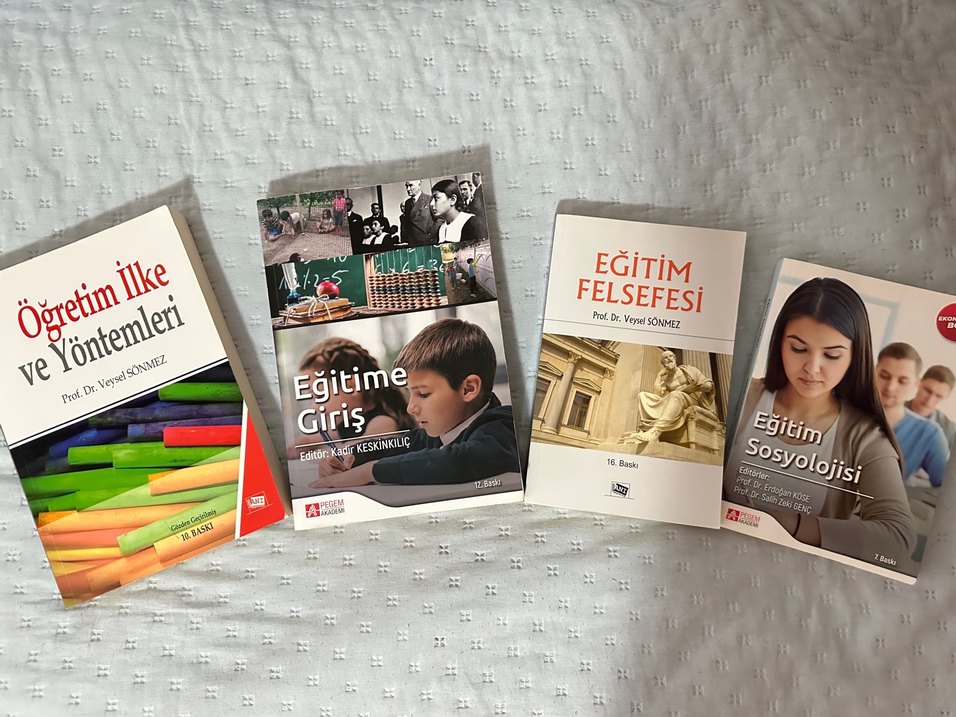 Eğitime dair birçok kitap. İhtiyacı olan kaçırmasın. Sadece Eğitime Giriş kitabının bazı sayfaları mor kalemle görseldeki gibi çizilmiştir. Diğer kitaplarda bir yazı/işaretleme yoktur. Bir tanesini almak isterseniz adeti 225₺ İletişime geçebilirsiniz✨