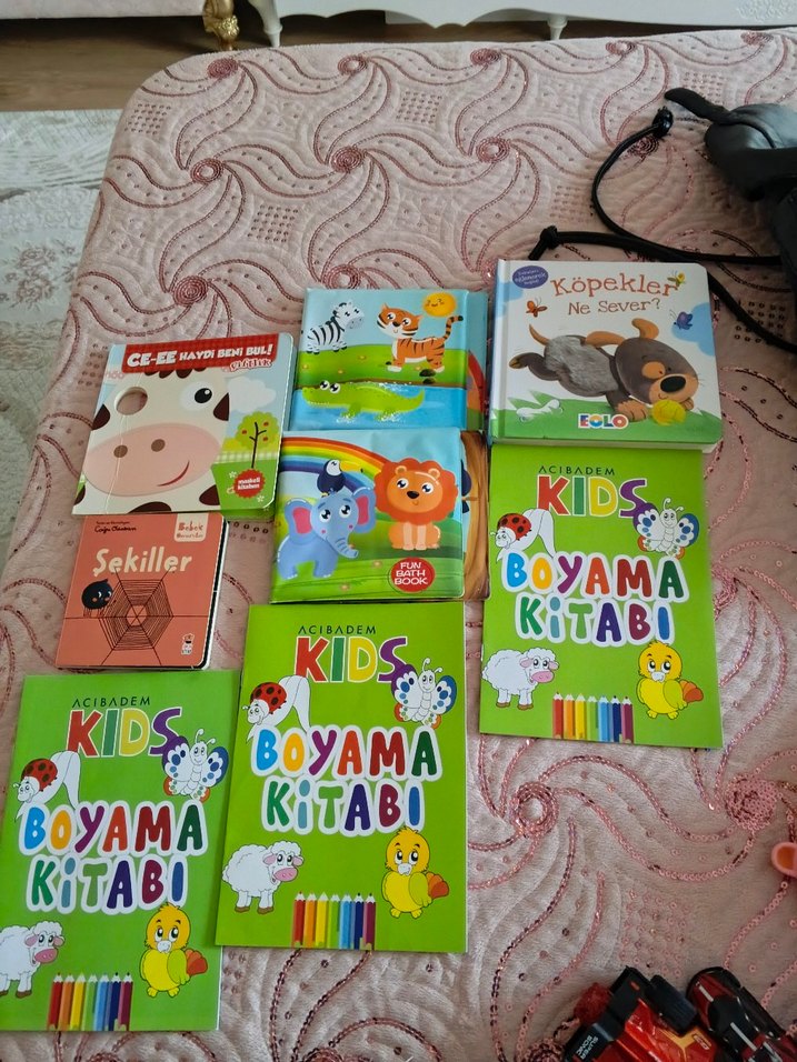Fil, aslan, kaplan, zebra ve timsah gibi hayvan resimleri boyama kitapları biraz kullanıldı onun dışında sorun yok