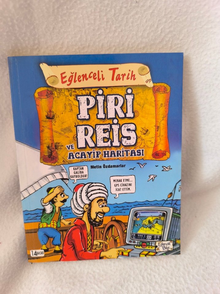 Metin Özdamarlar'ın yazdığı Piri Reis ve acayip haritasını anlatan eğlenceli tarih kitabı. Çocuklar için renkli ve öğretici içerik sunar. tertemizdir hiçbir sorunu yoktur