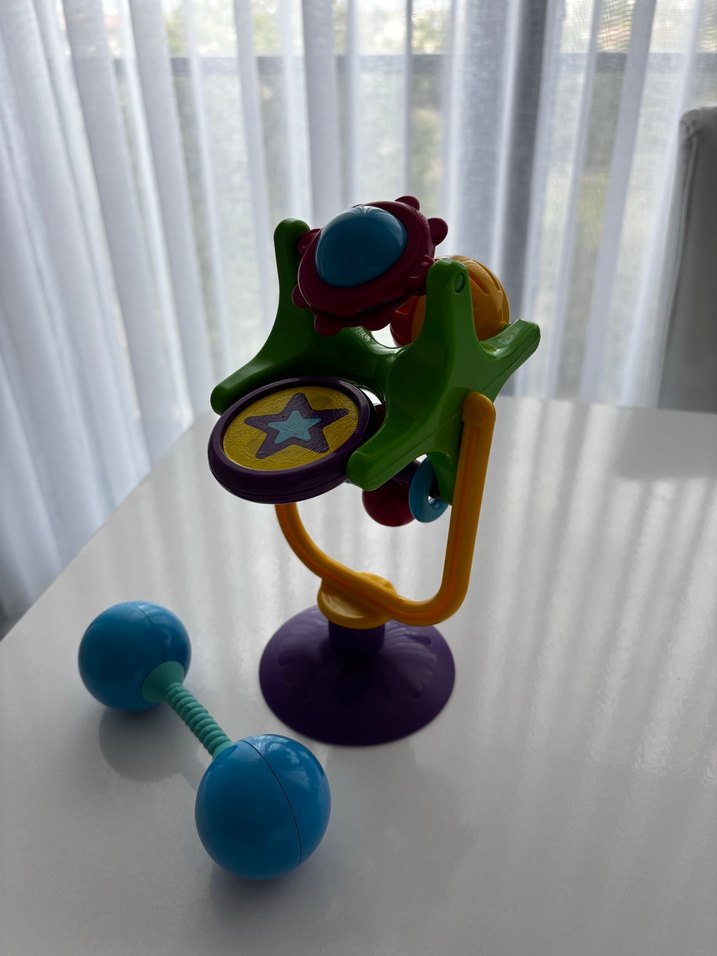 Bebekleri eğlendiren ve rahatlatan, çeşitli şekil ve dokulara sahip renkli diş kaşıyıcı ve çıngırak seti. Sabit durması için vantuz tabanlı. Yemek yedirirken bebeğinizi çok eğlendiriyor.