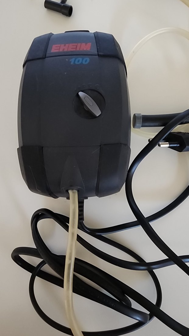 EHEIM 100 hava motoru, siyah ve gri renkte, akvaryumlar için uygundur. Ayarlanabilir hava akışı kontrolü bulunur.