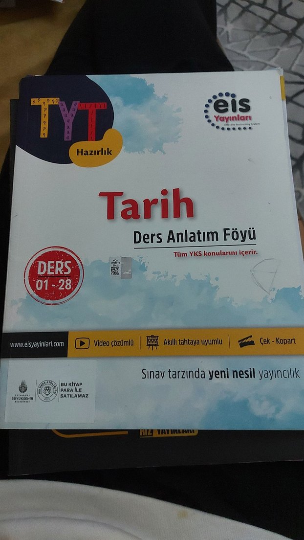 TYT hazırlık kitabı, tüm YKS tarih konularını video çözümleri ve çek-kopart föylerle sunar. Akıllı tahtaya uyumlu, sınav tarzında yeni nesil yayıncılık içerir. toplam 5 sayfa isaretli kurşun kalemle silinebilir digerleri boş