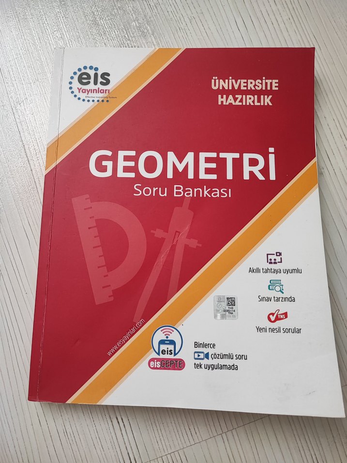 Eis Yayınları'ndan üniversite hazırlık için akıllı tahta uyumlu, sınav tarzında yeni nesil sorular ve binlerce çözümlü sorudan oluşan Geometri Soru Bankası. ilk 3 test çözülüdür.
