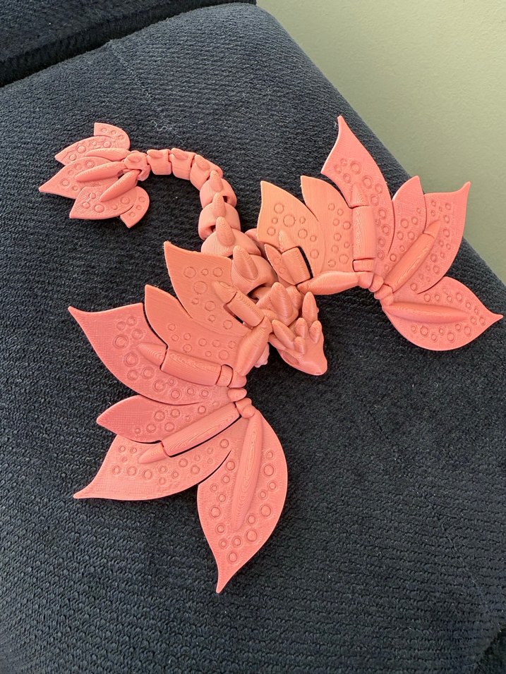 tamamen hareketli 3D baskı ejderha oyuncak. Kanatları, başı, kuyruğu ve gövde halkaları esnektir, farklı pozisyonlara getirilebilir. Çocuklar için faydaları: • İnce motor becerilerini geliştirir – küçük parçaları hareket ettirmek parmak kaslarını güçlendirir. • Göz–el koordinasyonunu artırır. • Dokunsal duyuyu destekler – detaylı yüzey yapısı sayesinde. • Hayal gücünü geliştirir, oyun kurmayı teşvik eder. • Hafif stres giderici etkisi vardır. Özellikler: • Kaliteli 3D yazıcı ile üretilmiştir • Detaylı ve pürüzsüz yüzey • Dayanıklı ve güvenli malzeme • Yeni, hiç kullanılmamış Boyut: 18х18 см