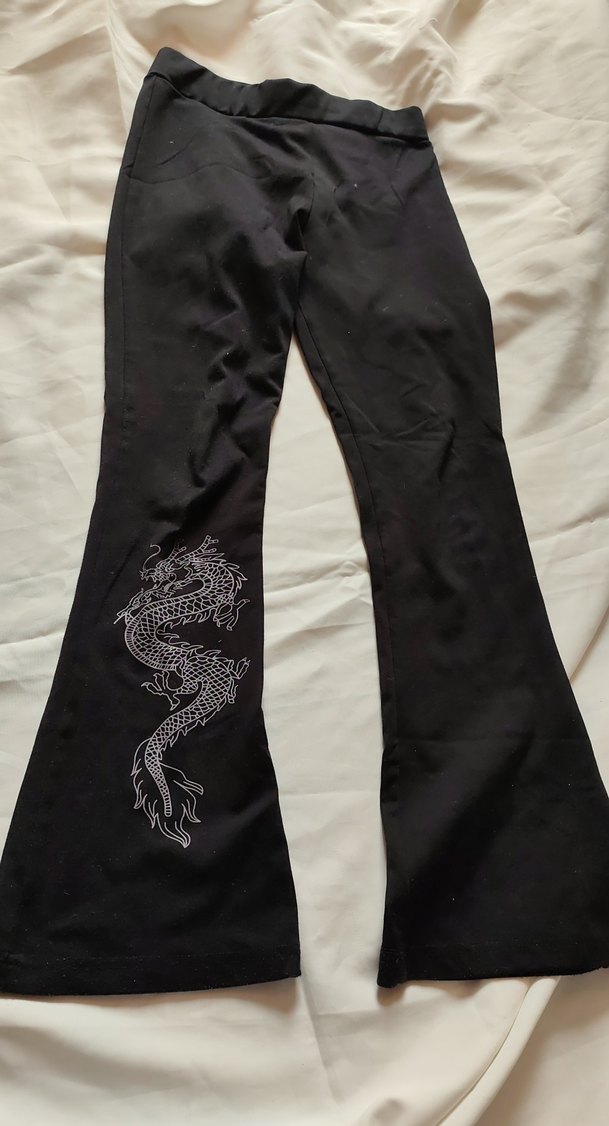 Ejderha Desenli Siyah İspanyol Paça Pantolon