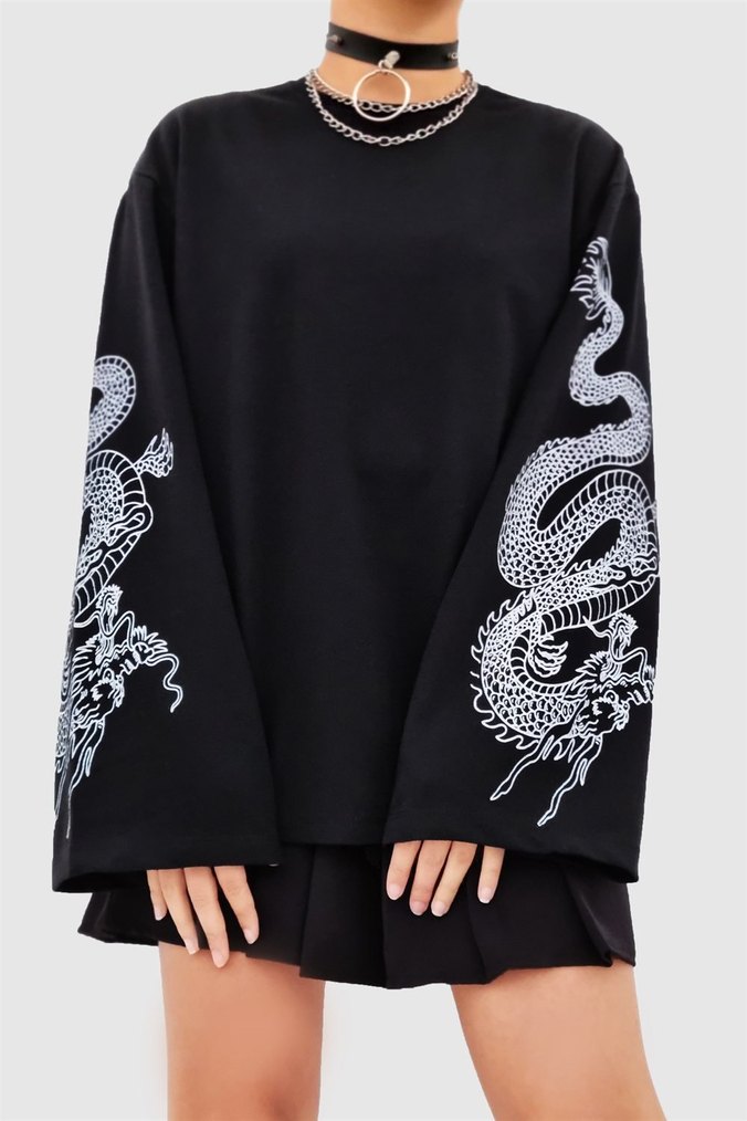 Ejderha Silüet İspanyol Kol Sweatshirt