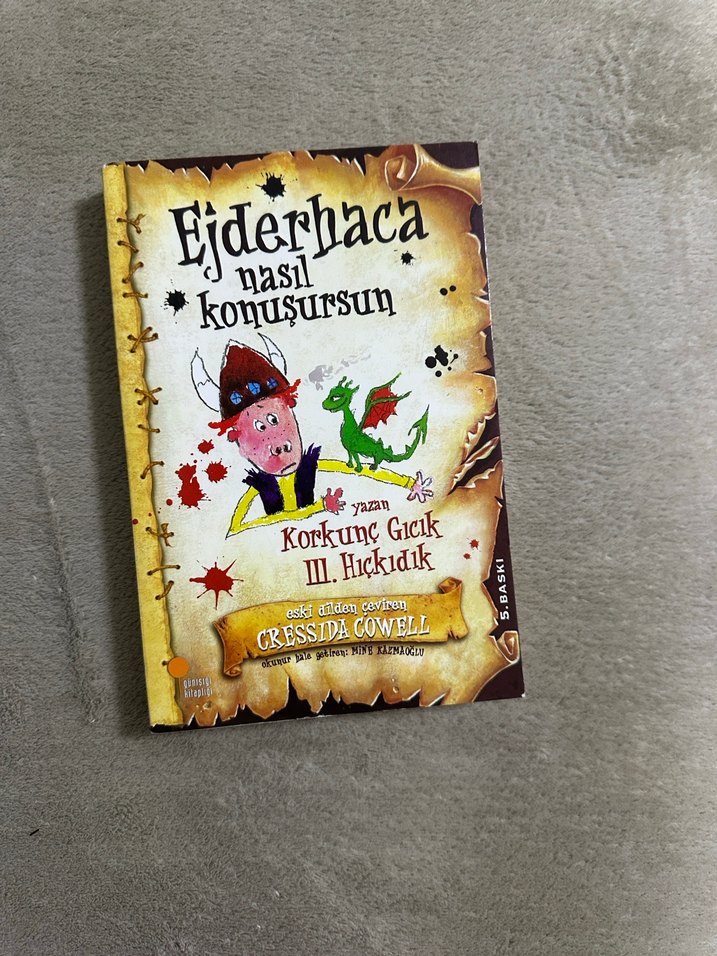 Cressida Cowell'in yazdığı "Ejderhaca Nasıl Konuşursun" kitabı, renkli çizimler ve eğlenceli karakterlerle dolu macera dolu bir hikaye sunuyor.