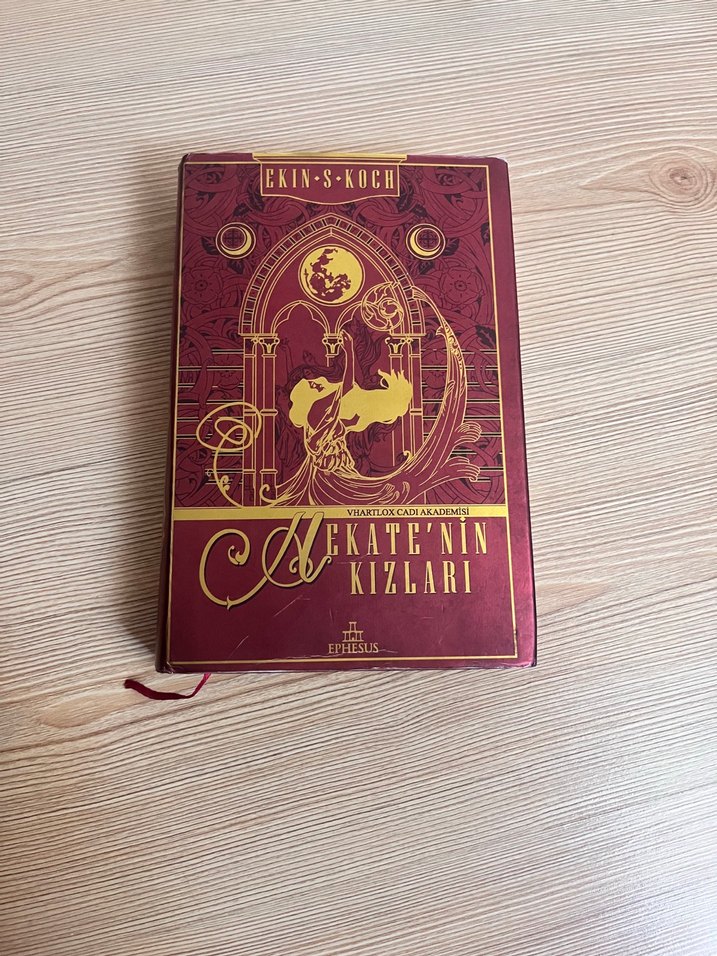 Ekin S. Koch'un "Ekaterina'nın Kızları" adlı romanı, altın detaylı koyu kırmızı kapakla tarihi ve mistik temaları yansıtıyor. ciltlidir