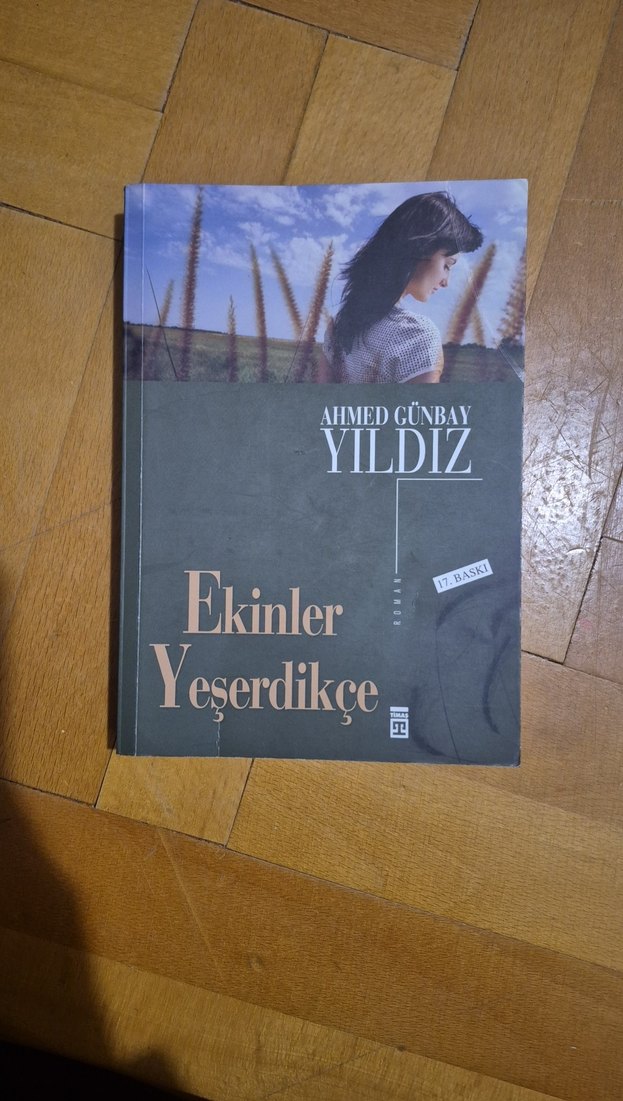 Ahmed Günbay Yıldız'ın "Ekinler Yeşerdikçe" adlı romanı, mavi gökyüzü altında tarlada bir kadını gösteren kapakla 17. baskı olarak sunuluyor.