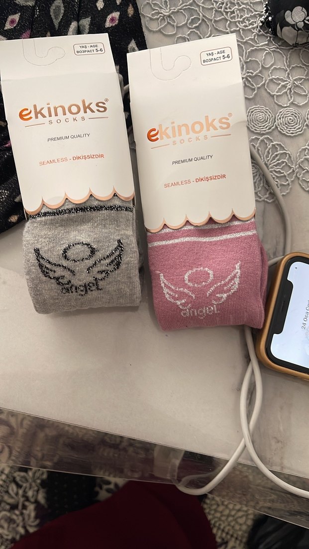 Ekinoks marka kız çocukları için örgü külotlu çoraplar, dikişsiz yapıya ve gri ile pembe renklerde melek baskısına sahiptir. Yumuşak dokulu, premium kalite.