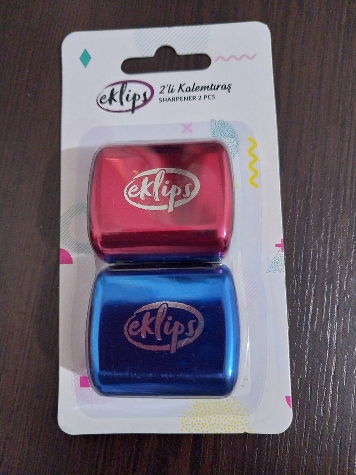 Eklips markalı, kırmızı ve mavi parlak renklerde 2'li kalemtıraş seti. Kompakt ve kullanışlı tasarıma sahiptir. ✏️