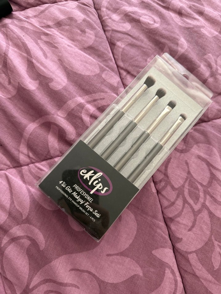 Eklips markasının 4'lü göz makyaj fırça seti, yumuşak kıllı ve bej saplı fırçalardan oluşur.