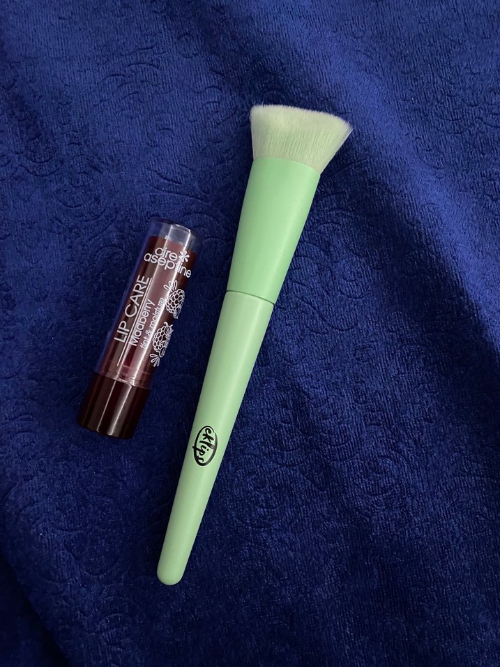 eklips fondöten fırçası ve kırmızı dudak kremi