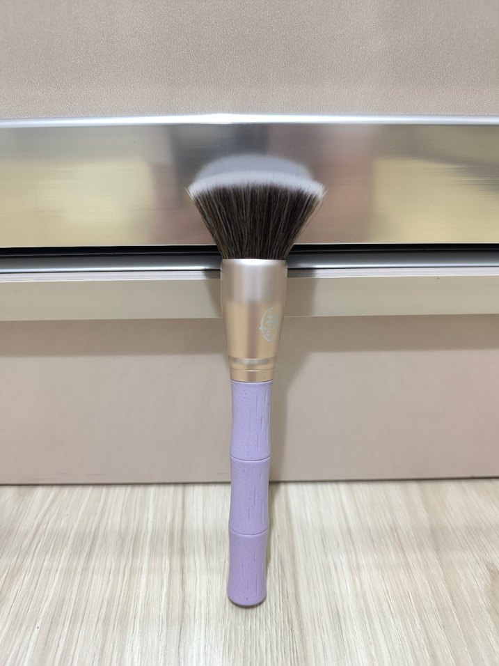 Eklips pastel mor saplı ve bej kıllı, pudra ürünlerini uygulamak için uygun makyaj fırçası. ️