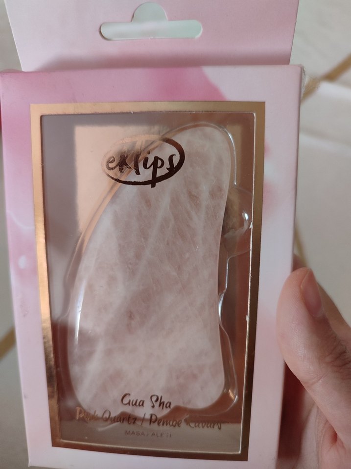 Eklips pembe kuvars Gua Sha yüz masaj taşı, cilt dolaşımını artırmak ve rahatlama sağlamak için tasarlanmıştır. Pürüzsüz pembe kuvars taşından yapılmıştır. yenidir bir kere kullanıldı kırığı yok