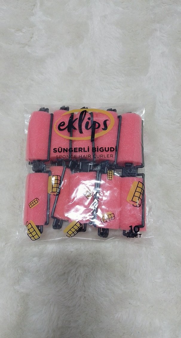 Eklips marka pembe süngerli bigudi seti, 10 adet, saçları kolayca bukle yapmak için kullanılır. Paket şeffaf ve renkli detaylara sahip.