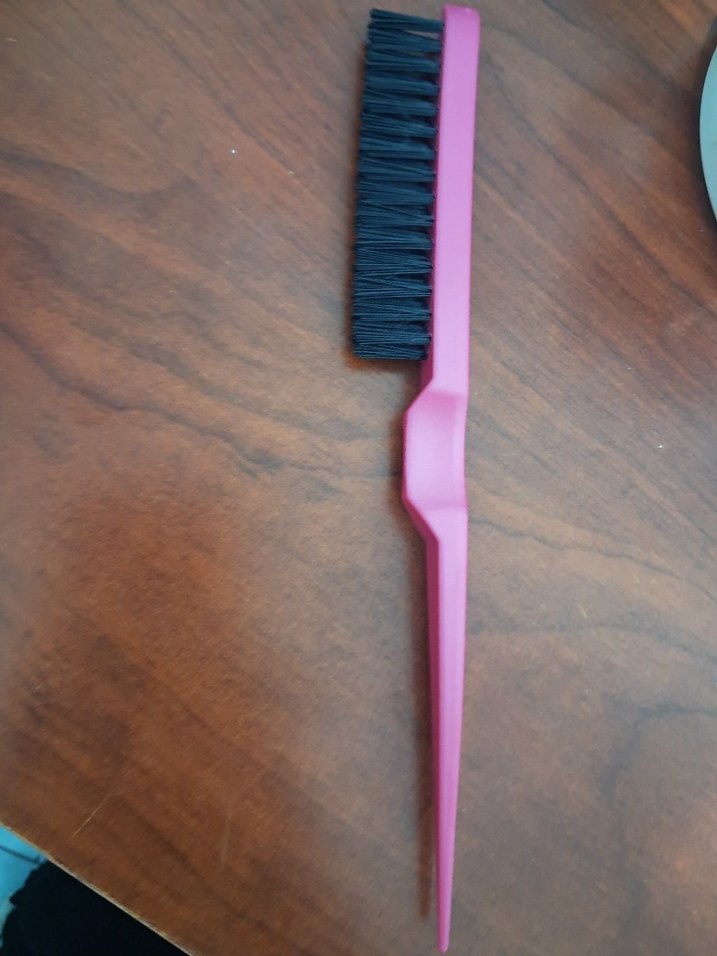 Pembe saplı, ince kıllı ve uç kısmı ince saç fırçası, saç şekillendirme için uygundur.