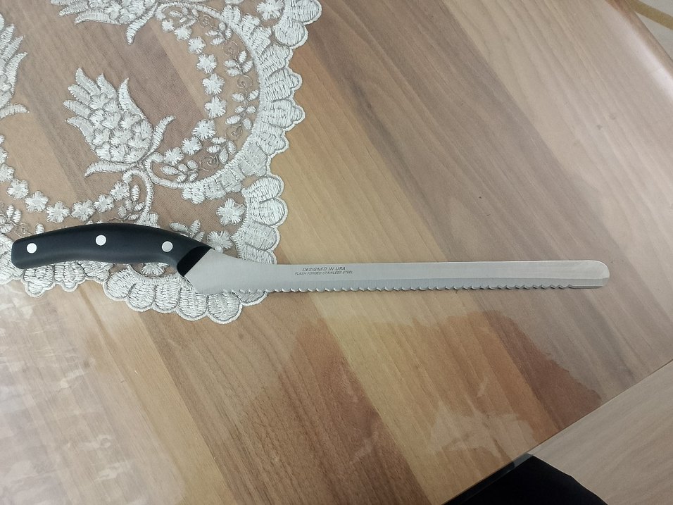 siyah saplı ve dişli bıçağı ile ekmek ve hamur işlerini kolayca kesebilirsiniz. sıfır ürün 40 cm uzunluk