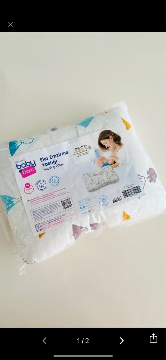 Pastel renklerde desenli, emzirme sırasında konfor sağlayan eko dostu malzemeden yapılmış emzirme yastığı.